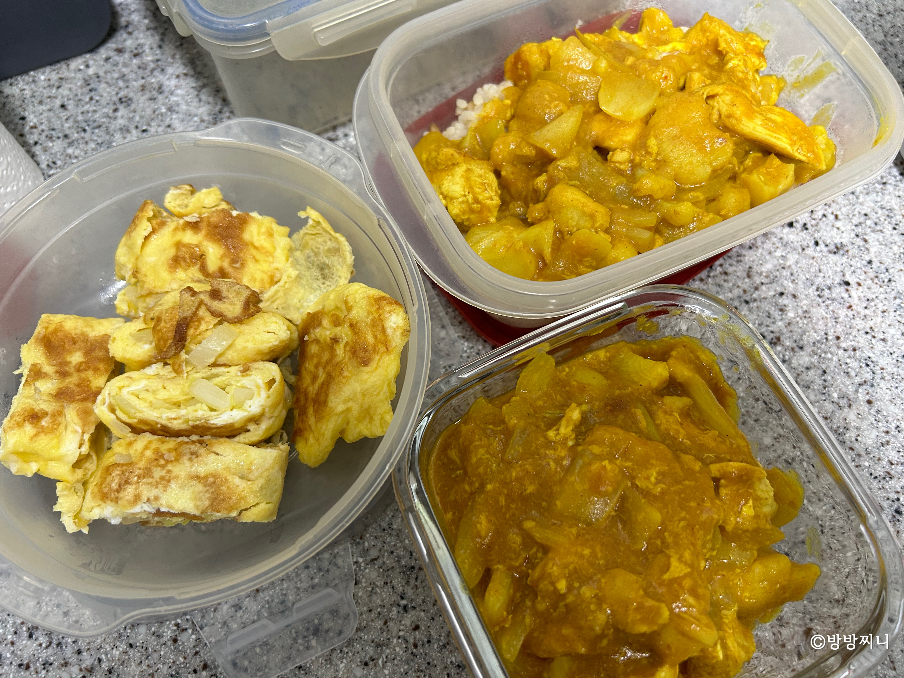 회사에서 먹을 도시락 반찬 겸 아이 먹일 카레를 한번 만들어 보았다. 늘 그렇듯 휘뚜루마뚜루 만드는 요리.